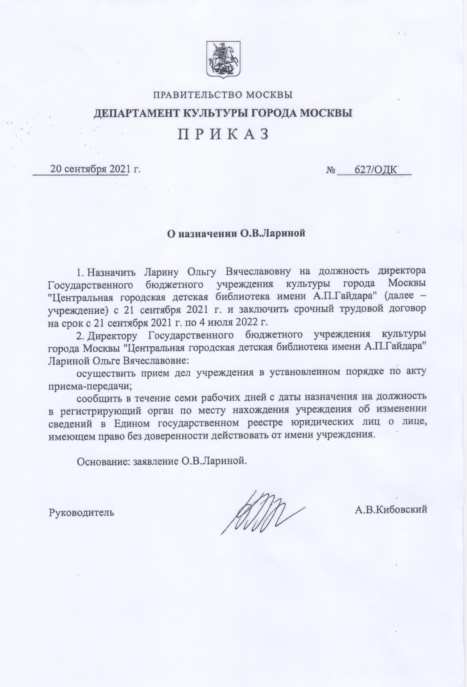 Устав ГБУК г. Москвы "ЦГДБ им. А. П. Гайдара"