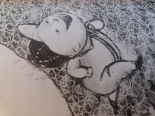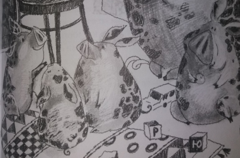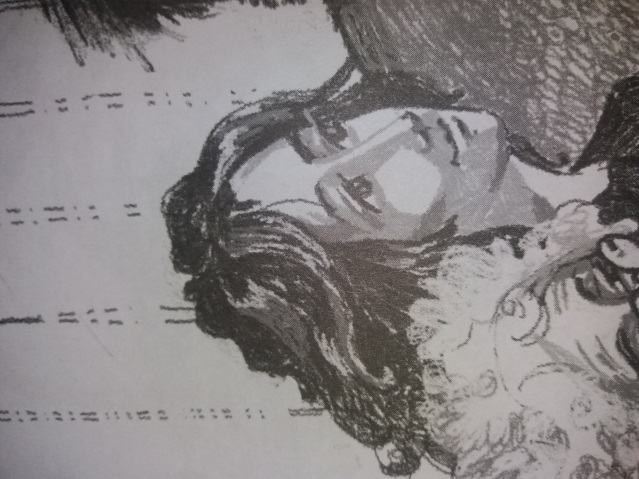 Обратите внимание на рисунки в книге – это карандашные, с тенями и силуэтами. Я не знаю, почему, но у людей нет лиц. И в основном изображены руки и ноги. Это тоже какая-то загадка, стиль или нет конкретных черт людей, во время чтения этой истории. Но, это оставляет место фантазировать. И хочется обязательно дорисовать, чтобы выглядело законченным рисунком.