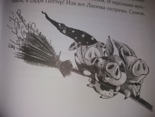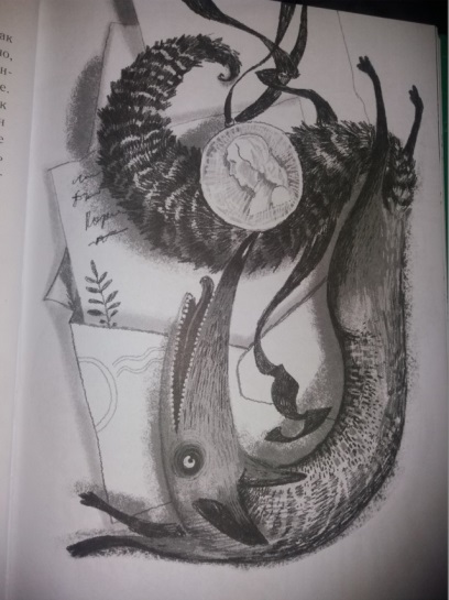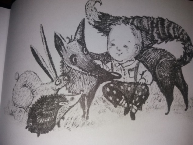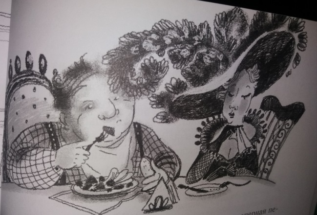 но остальные иллюстрации черно-белые. Мне больше нравится читать книги с цветными картинками, как, думаю, и большинству детей, хотя сама я сейчас тоже часто рисую простым карандашом (не всегда получается подобрать цвета для раскрашивания, особенно портретов) и могу принять такой стиль художника.