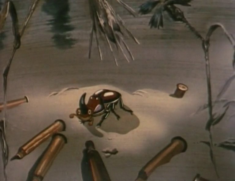Позже автор дал ей другое название, вернее, даже два — «Похождения жука-носорога» и в скобках — «Солдатская сказка».