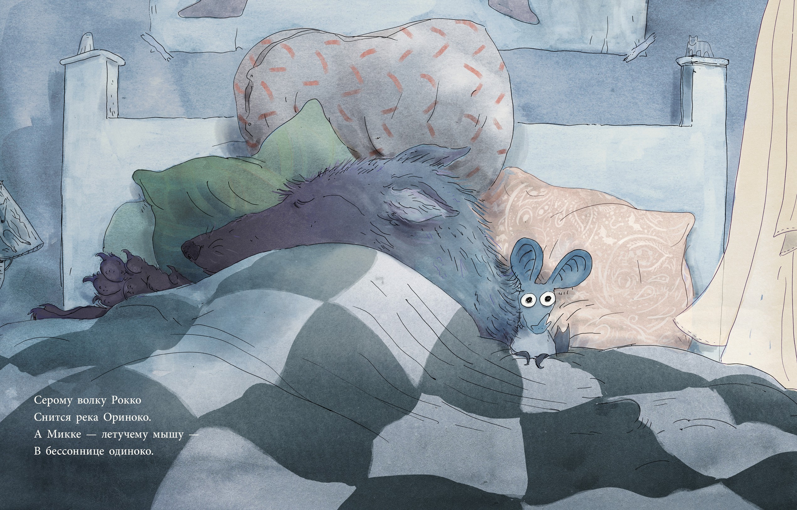 Эту весёлую сказку в стихах немецкого писателя Андреаса Греве в переводе Анастасии Строкиной лучше всего читать ребёнку на ночь. История «Ты спишь?» — про маленькую летучую мышь, которая никак не могла уснуть, а её лучший друг уже сладко спал.