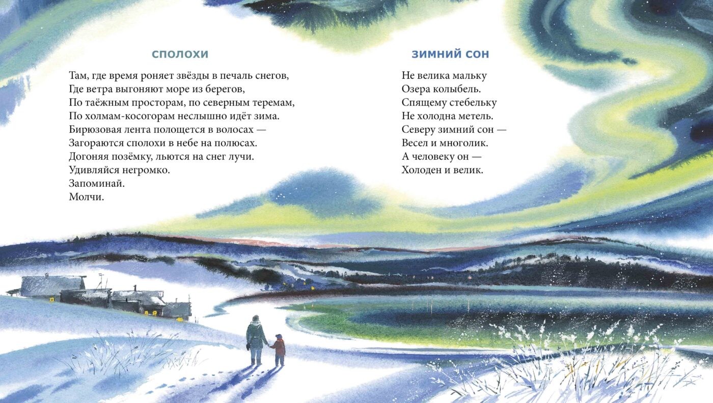 Сколько в этих точных и чистых стихах-зарисовках Марины Зарубиной – поэта из Архангельска — простора, высокого северного неба, радости и одновременно грусти от скоротечности лета, сколько многовековой мудрости. Поэтичны и необычны даже сами названия: «Деревянные мосточки», «Сполохи», «Ледостав», «Лето-река». Стихи органично дополняют иллюстрации художницы из династии Чарушиных, в которых соединились традиция и свежий взгляд на мир русского Севера.