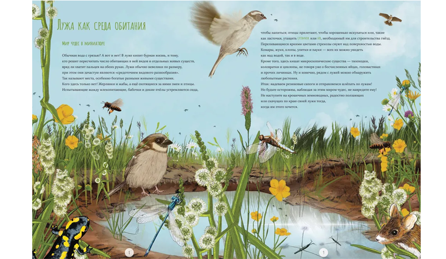 Очень красивая и очень информативная книга о том, что, в буквальном смысле, находится у нас под ногами: лужа – мир чудес и неожиданных открытий, среда обитания многих замечательных животных и растений. В луже и вокруг неё жизнь никогда не замирает, даже если зимой она покрывается льдом. Если лужи поблизости нет, – её можно сделать самостоятельно. Из книги биолога и журналиста Ангелики ХуберЯниш вы узнаете, как появляются лужи, как в них зарождается жизнь, как их обитатели дышат под водой и как лужи могут влиять на изменение климата.