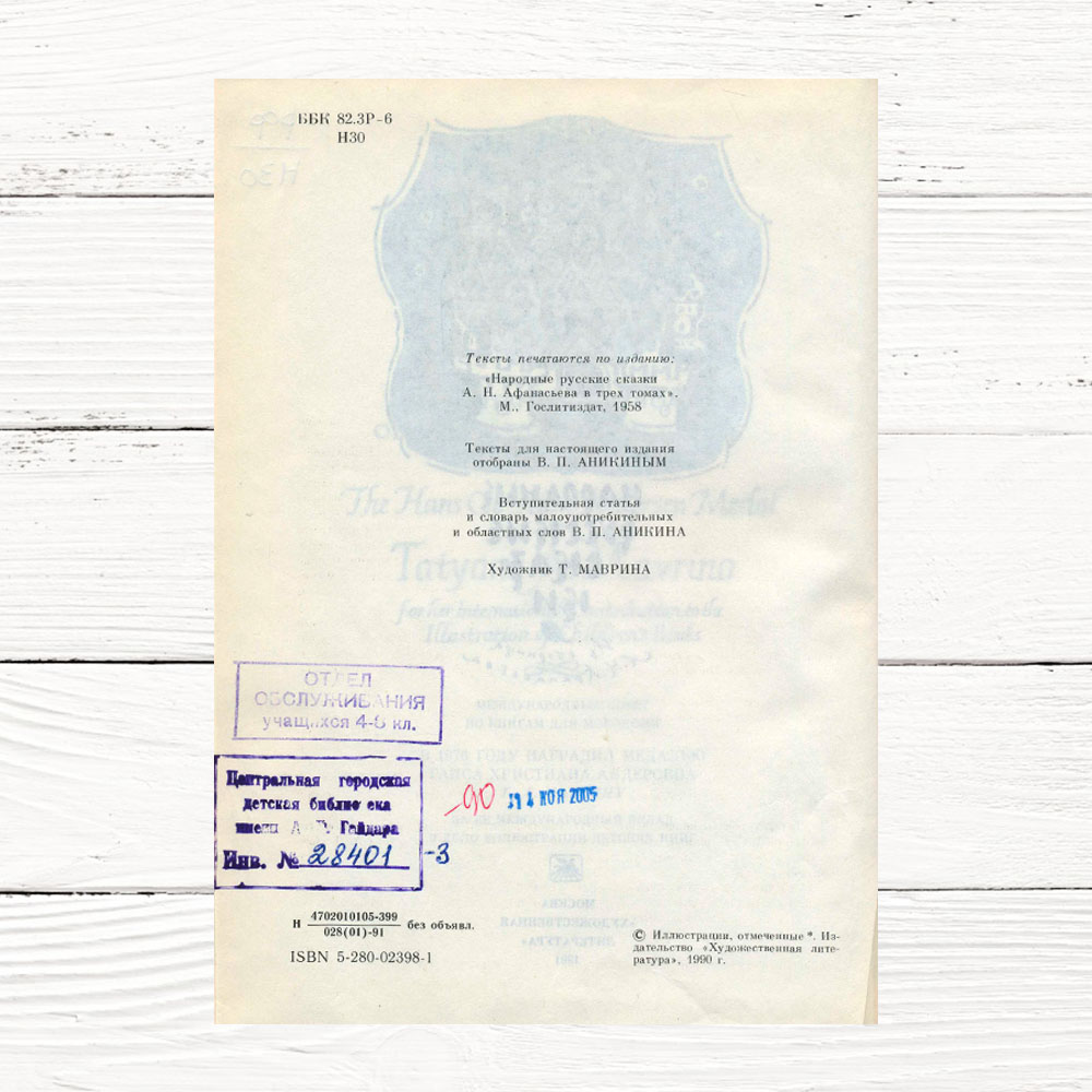 В этом разделе вы найдете иллюстрации Татьяны Мавриной к изданиям из фонда редких книг Центральной городской детской библиотеки им. А.П.Гайдара. В фонд редких книг попадает литература, имеющая научную, историко-культурную, художественную и библиографическую ценность. Мы выдадим их вам для работы в стенах библиотеки, но за её пределы их выносить нельзя.